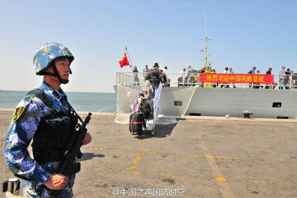 During a mission to the Gulf of Aden and the waters of Somalia, the Navy escort fleet picked up 124 Chinese citizens from Yemen on March 29, 2015. Later, the fleet, sending three battleships, evacuated 621 Chinese citizens and helped evacuate 276 foreigners from 15 countries.