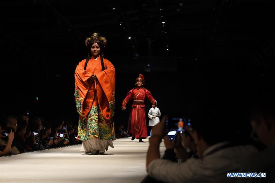 Artists perform in the immersive melodrama "Encore Dunhuang" in Dunhuang, northwest China's Gansu Province, April 23, 2019. Unlike traditional shows, the show invites the audience to walk through five scenes to experience the 2,000-year history and travel along the silk road. Since the debut in 2016, the melodrama has attracted over one million tourists both at home and abroad. (Xinhua/Fan Peishen)