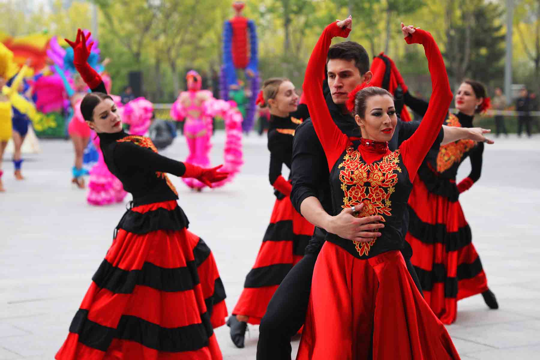 Performers dance to welcome the Beijing Horticultural Exhibition 2019 on April 29 (People's Daily Online/Xian Jiangnan)