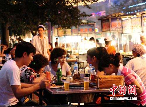 According to statistics released by a food court in Beijing's Shunyi district on May 5, the visitor headcount per day hit 58,800 over the Labor Day holiday, up 144.7 percent from a year ago thanks to the opening of its night market. The single-day revenue of the food court also rose 34.2 percent to 6.59 million yuan ($978,660).