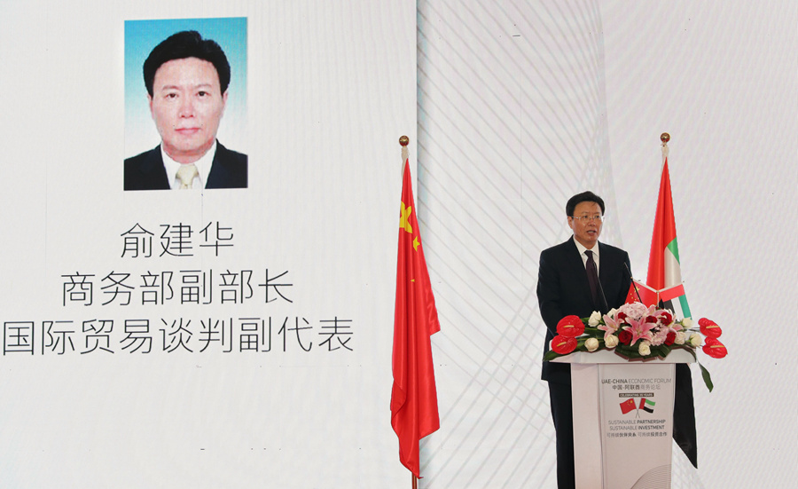 Yu Jianhua, Vice Minister of Commerce of China and Deputy China International Trade Representative, addressed the forum. “Last summer, President Xi Jinping paid a state visit to the UAE, upgrading the relationship to a comprehensive strategic partnership. Already the bilateral economic and trade cooperation between the two countries has achieved fruitful results. China has become the largest trading partner of the UAE, while the UAE has become the second largest trading partner and the largest export market of China in the Arab region,” he said.
