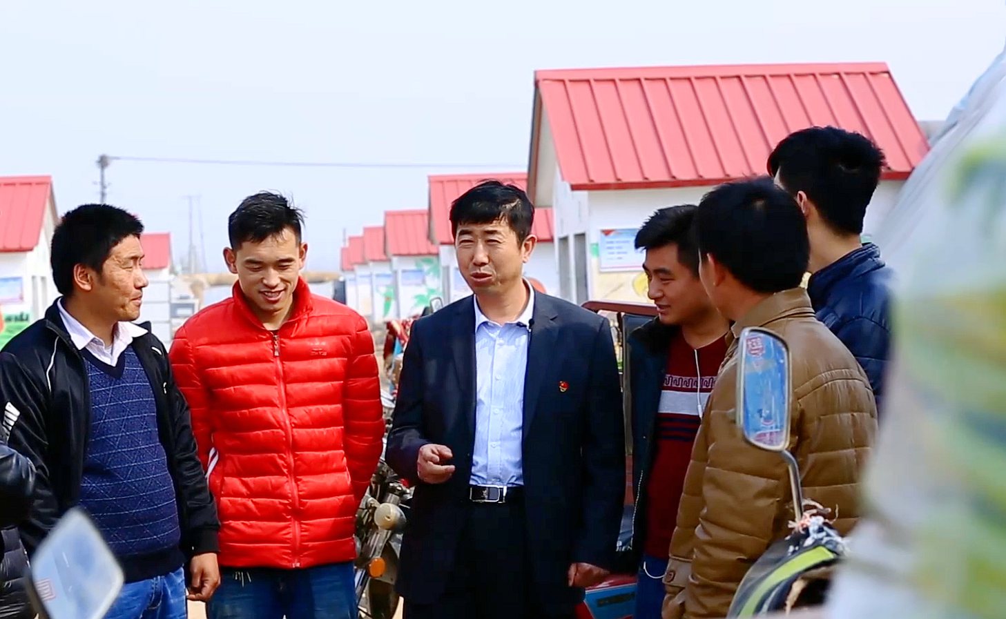 Geng Zunzhu (3rd L), Party Secretary of Gengdian Village, talks with young villagers.
