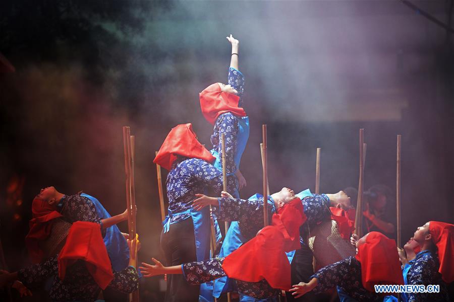 People dance to greet advent of New Year in Ameiqituo Town, Guizhou
