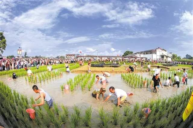 In Dianjiang County, Chongqing, people discussed the harvest of the year in rice fields and held fishing competitions.