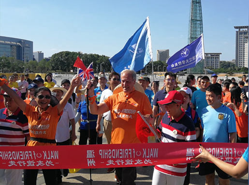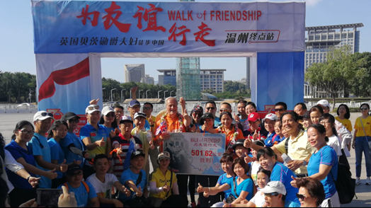 "Walking for Friendship" - a month-long hike organized by Lord Bates and Mrs. Li Xuelin, was launched on August 19 at Zhejiang University, marking the beginning of a 500-kilometer walk from Hangzhou to Wenzhou for the married couple. Along the way, they raised money for public charity and donated it to relevant institutions.
