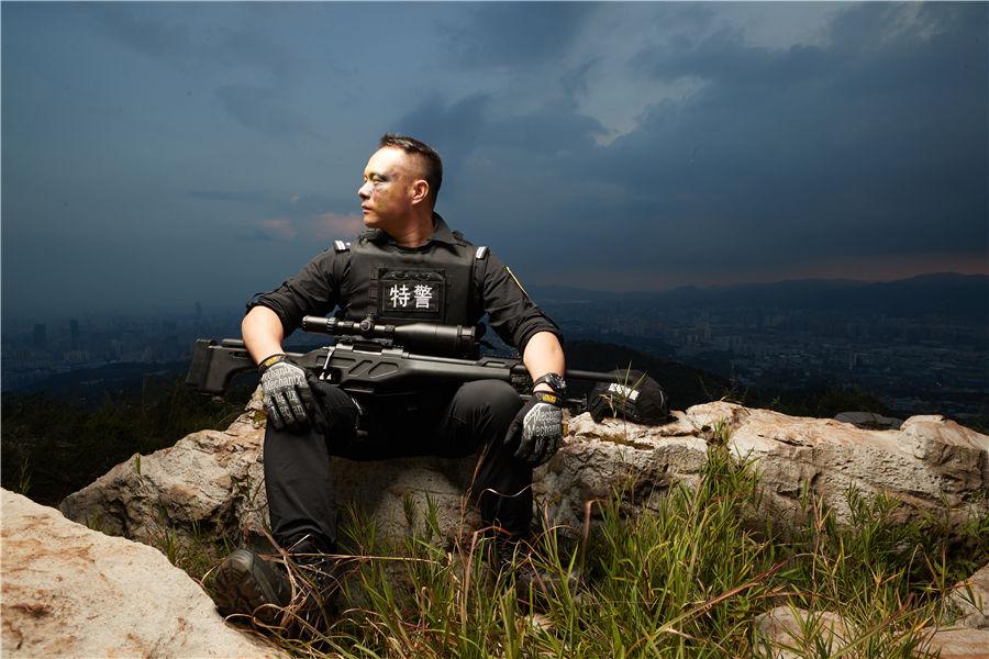 Zou Luyao, a SWAT team member in Kunming, Southwest China’s Yunnan province, is featured in a series of photos celebrating the 70th anniversary of the People’s Republic of China. (Photo provided to chinadaily.com.cn)