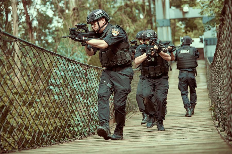 SWAT team member Zou Luyao and his colleagues in Kunming, Southwest China's Yunnan province, take part in a practice drill. Zou is featured in a series of photos and a video clip celebrating the 70th anniversary of the People's Republic of China. (Photo provided to chinadaily.com.cn)