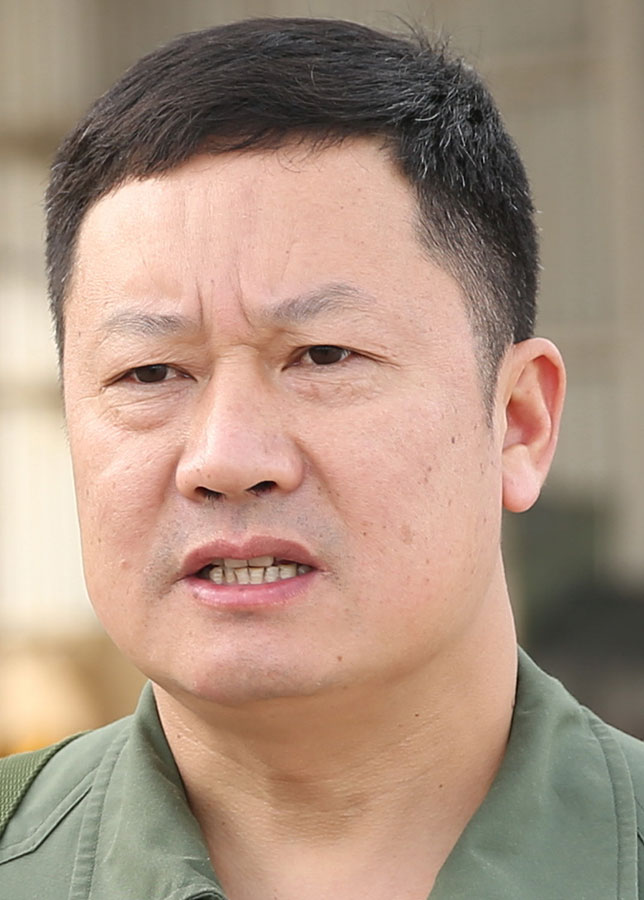 Zhang Ye, pilot of the lead aircraft in the J-15 formation during the National Day parade