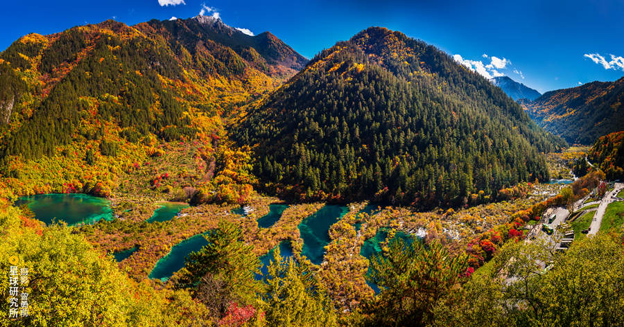While destroying the original landscape, geological forms such as glaciers, landslides, mudslides, and running water created a masterpiece in the Aba Tibetan and Qiang Autonomous Prefecture of southwest China's Sichuan province, which is the Jiuzhaigou National Park. Mountains, lakes, and waterfalls coexist successfully and add color to one another, forming a splendid and colorful fairyland. In 1992, it was listed as a World Heritage Site.