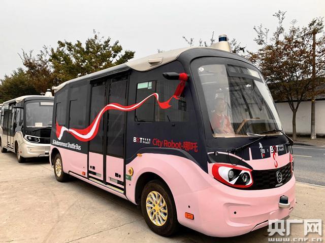 A driverless bus covered by 5G network will provide commuter services during the 6th WIC. (Photo/CNR)