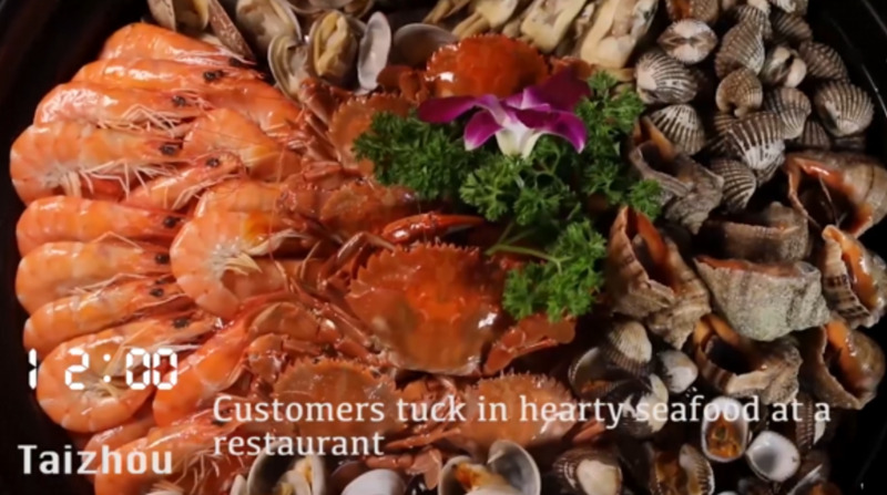 Customers tuck in hearty seafood at a restaurant.
