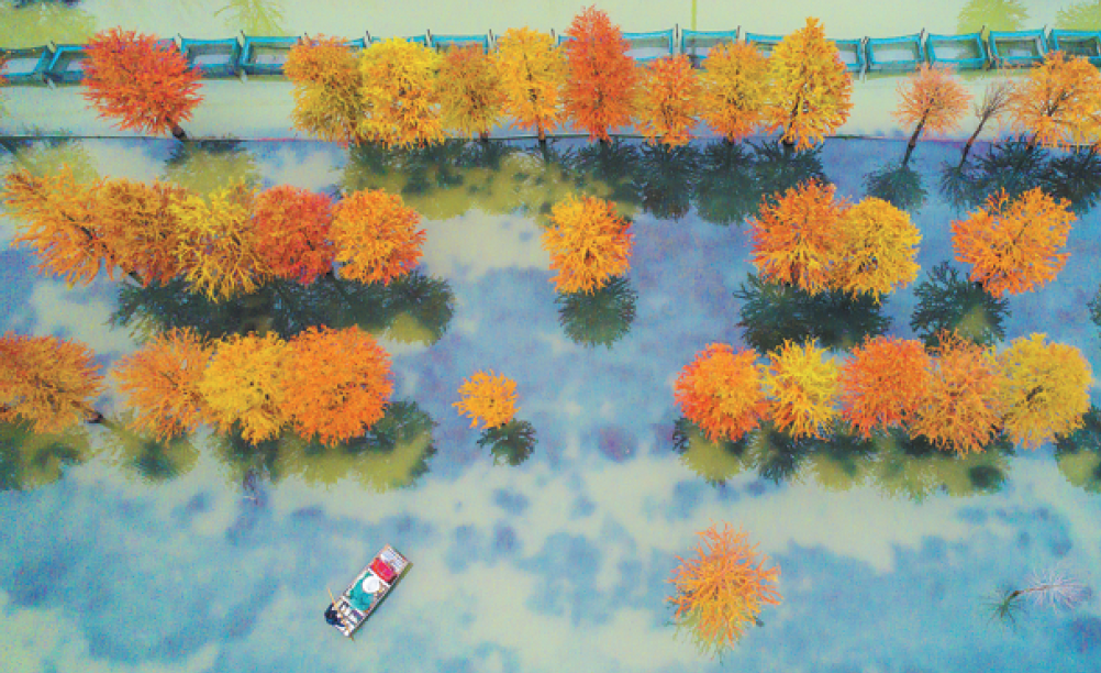 A crab farmer works in Suqian, Jiangsu province, on Saturday. The plan for integrated development of the Yangtze River Delta is expected to further improve the ecology of the region. [ZHANG LIANHUA / CHINA NEWS SERVICE]
