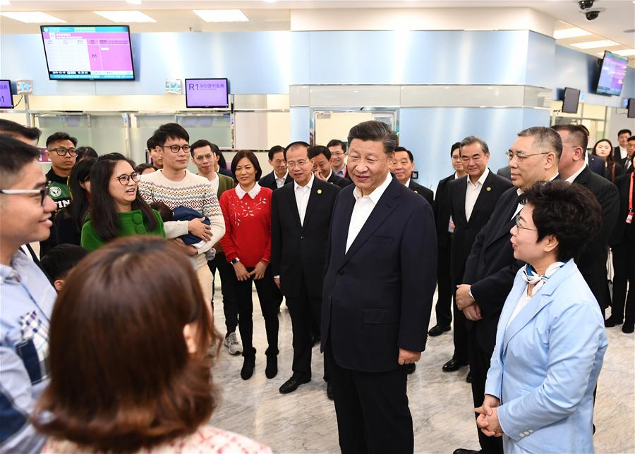 Chinese President Xi Jinping has exchanges with citizens at the Government Services Center in Areia Preta, south China's Macao, Dec. 19, 2019. (Xinhua/Xie Huanchi)