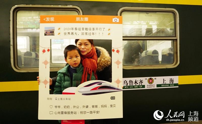 The first temporary train going to Urumqi in northwest China's Xinjiang Uygur Autonomous Region left from the Shanghai Railway Station on Jan. 8. (Photo/People's Daily Online)