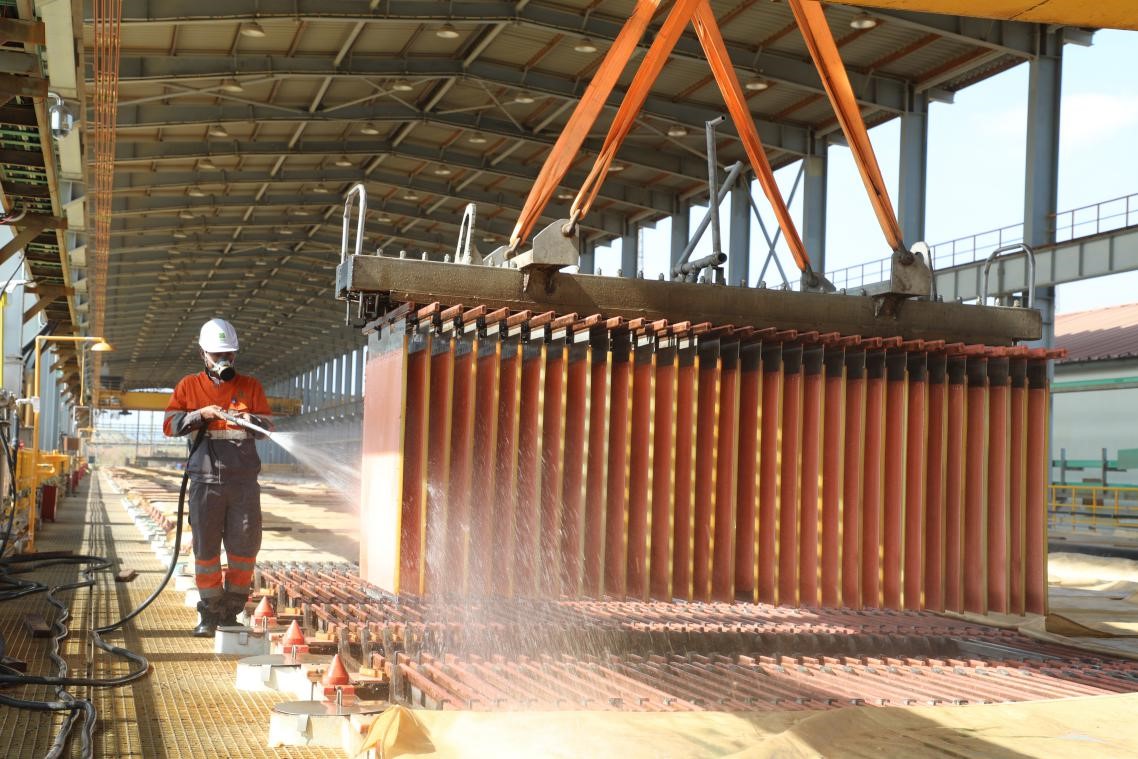 A worker operates the equipment at a smeltery of the Letpadaung Copper Mine. (By Sun Guangyong, People's Daily)