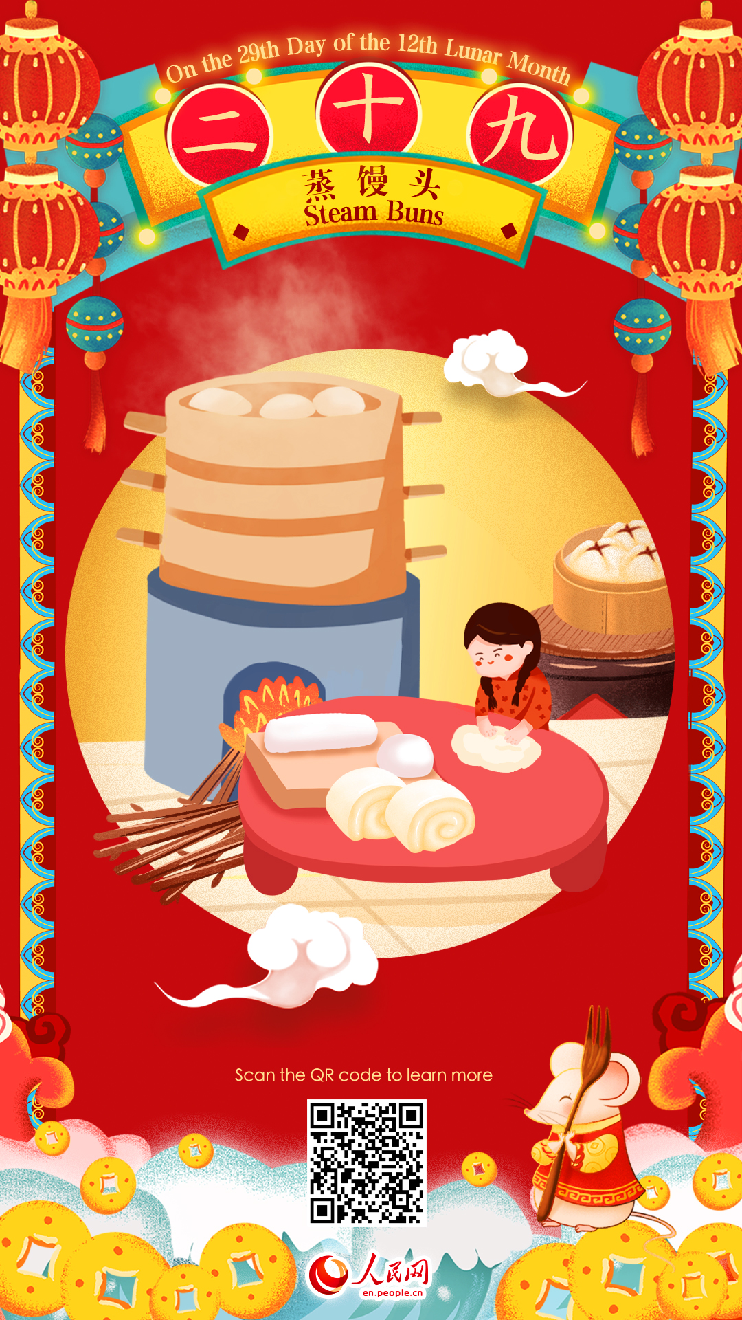 According to tradition from ancient times, people can’t cook with fire during the first few days of the new year. Because of this, every family would make a lot of steamed buns on the 29th day of the twelfth lunar month. The family with the best buns is believed to have the most promising life in the coming year.