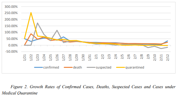 Nationwide, the spread of the deadly virus has been effectively curbed. Although the adoption of a new diagnosis criteria resulted in a sharp increase in reported newinfections and death toll on February 12 alone, the growth rates of both categories were lower than those during the peak moment. The growth rate of confirmed cases decreased from 64.54% on January 27 to 33.93% on February 12; that of COVID-19- associated deaths decreased from the peak of 64% on January 24 to 22.82% on February 12. Moreover, suspected cases and patients under medical observation were also on the decline. Suspected cases registered a negative growth rate of -16.38% on February 12 compared with 173.77% on January 23, while the growth rate of patients under medical observation decreased from as high as 253.52% on January 22 to a negative rate of - 1.97% on February 12. (Figure 2)