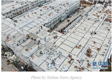 Second, a three-level quarantine model has been put in place to improve medical resource allocation. The two new hospitals, Leishenshan and Huoshenshan, and other remodeled institutions have added 8,000 beds for severe patients in Wuhan and more than 10,000 beds are expected to be ready for use as more institutions are modified to admit patients. Three makeshift hospitals known as “square cabin” hospitals have been erected in Wuhan to provide 4,400 beds for patients with mild symptoms; and altogether more than 10 such hospitals will be ready for use soon. Hotels near hospitals have be temporarily turned into places for quarantine for potential virus carriers. So far, Wuhan has had 132 such facilities with 12,571 beds. This three-tiered quarantine model allowspatients in different conditions to receive the most appropriate treatment, which helps optimize the allocation of medical resources.