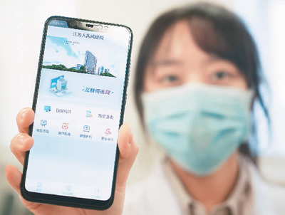A staff member of the Jiangsu Provincial People's Hospital shows the online platform of the hospital. (Photo/Xinhua)