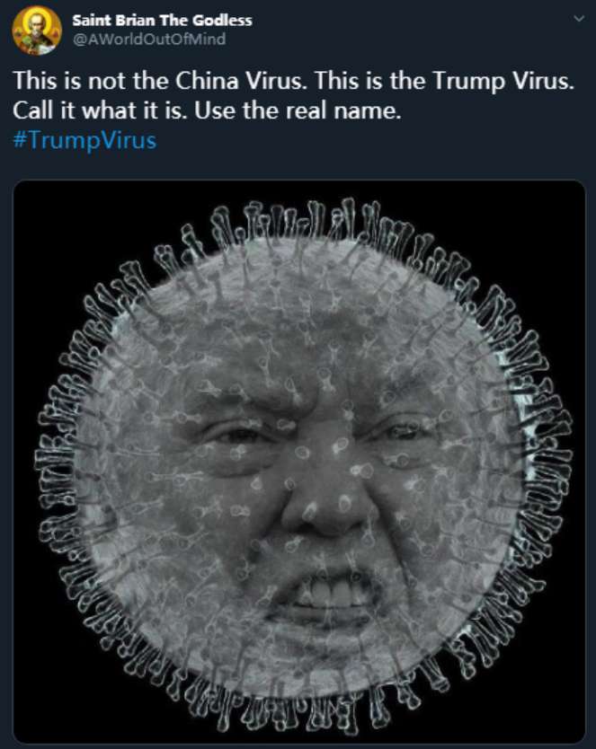 One user on Twitter tweeted: "This is not the China Virus. This is the Trump Virus. Call it what it is. Use the real name," with an image of the "Trump Virus."