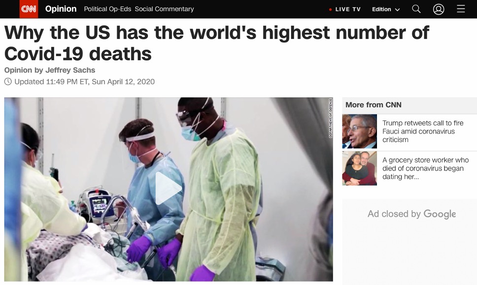 According to CNN’s article, Americans will continue to die in large numbers until the country mounts a coherent response to the epidemic. “President Donald Trump has failed. The US still lacks even a basic plan for controlling the epidemic and restarting the economy.”