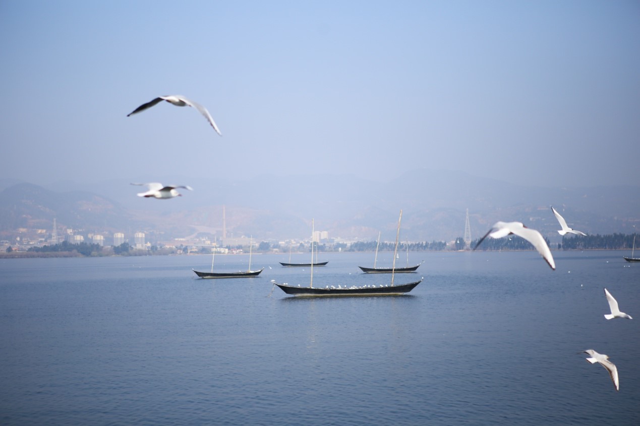 Red-billed gulls forage on Dianchi Lake, March 8, 2017. Photo by Li Faxing/People's Daily Online
