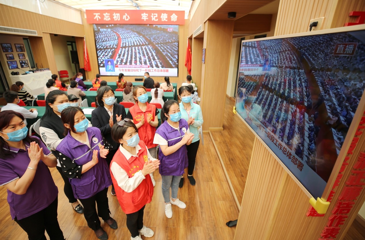 Residents watch the opening ceremony of the third session of the 13th National People’s Congress in Wenhui neighborhood, Dongying district, Dongying of east China’s Shandong province, May 22. Photo by Liu Zhifeng/People's Daily Online