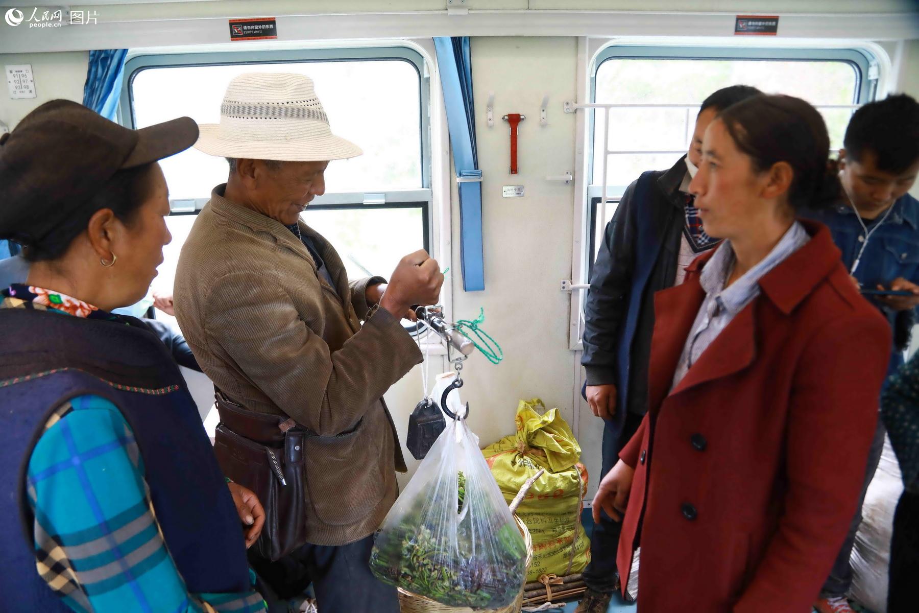Local people of the Yi ethnic group are turning to the famous low-speed green trains that run from Chengdu, capital of southwest China's Sichuan province, and Kunming, capital of southwest China's Yunnan Province, to boost their incomes.