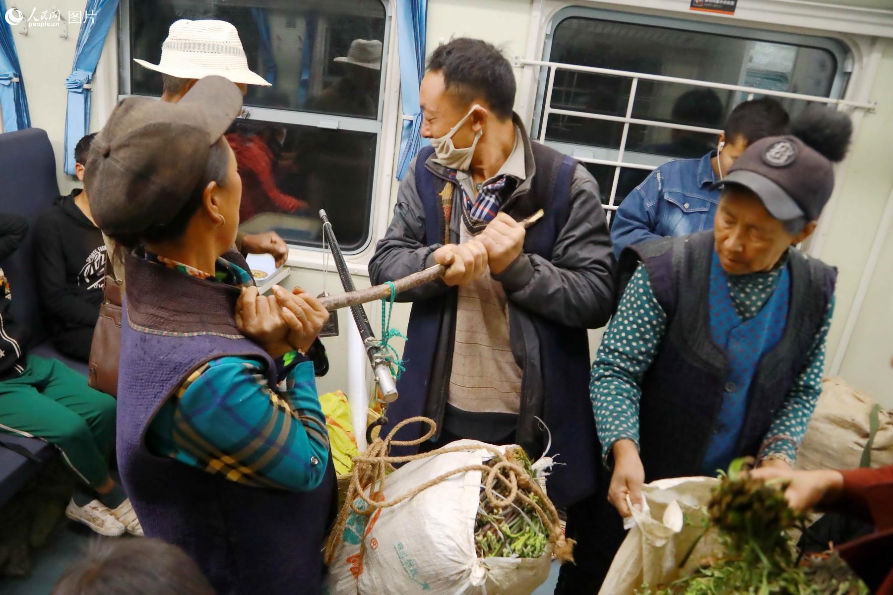 Local people of the Yi ethnic group are turning to the famous low-speed green trains that run from Chengdu, capital of southwest China's Sichuan province, and Kunming, capital of southwest China's Yunnan Province, to boost their incomes.