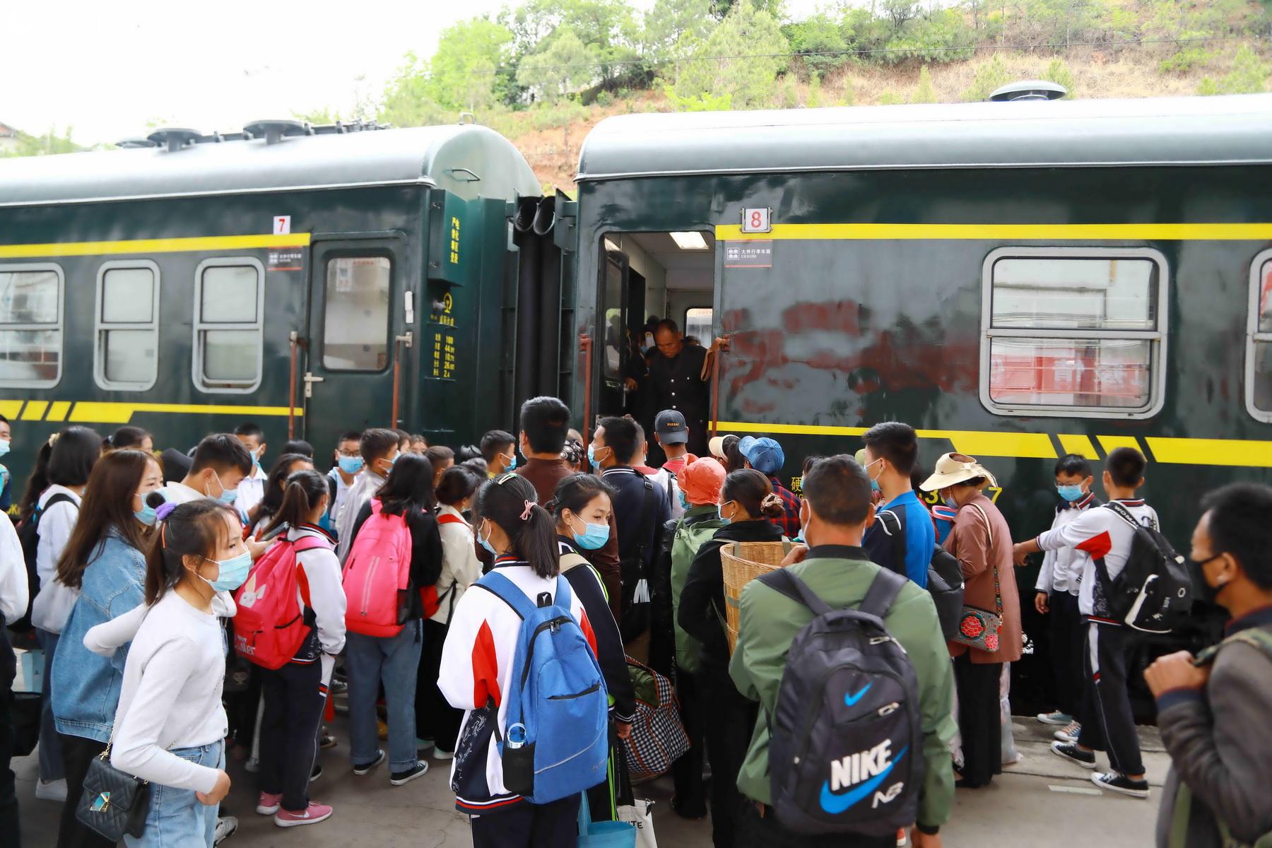Students wait to get on Train No. 5633 on May 17. (Photo/Li Kai)