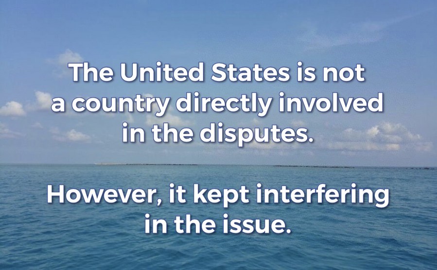 "The United States is not a country directly involved in the disputes. However, it has kept interfering in the issue," the spokesperson said, adding that under the pretext of preserving stability, it is flexing muscles, stirring up tension and inciting confrontation in the region.