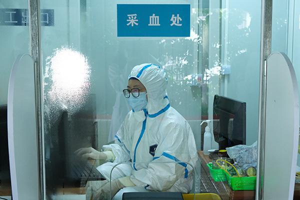 Photo shows the cabin where medics take blood samples from patients. Photo courtesy of Shanghai East Hospital affiliated to Tongji University