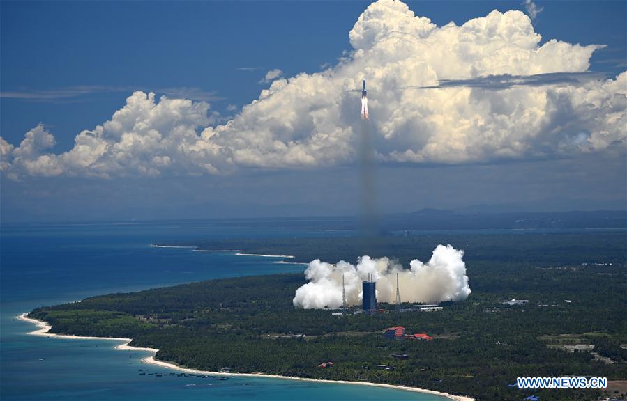 A Mars probe is launched on a Long March-5 rocket from the Wenchang Spacecraft Launch Site in south China's Hainan Province, July 23, 2020. (Xinhua/Yang Guanyu)