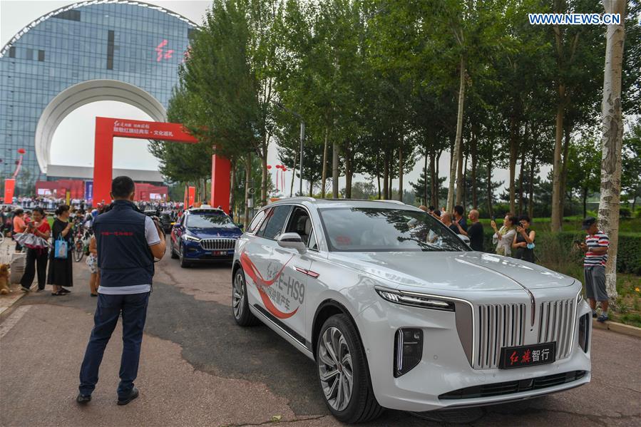 A fleet of vehicles start an urban tour during an event showcasing the products and culture of China's iconic auto brand Hongqi in Changchun, northeast China's Jilin Province, July 28, 2020. (Xinhua/Zhang Nan)