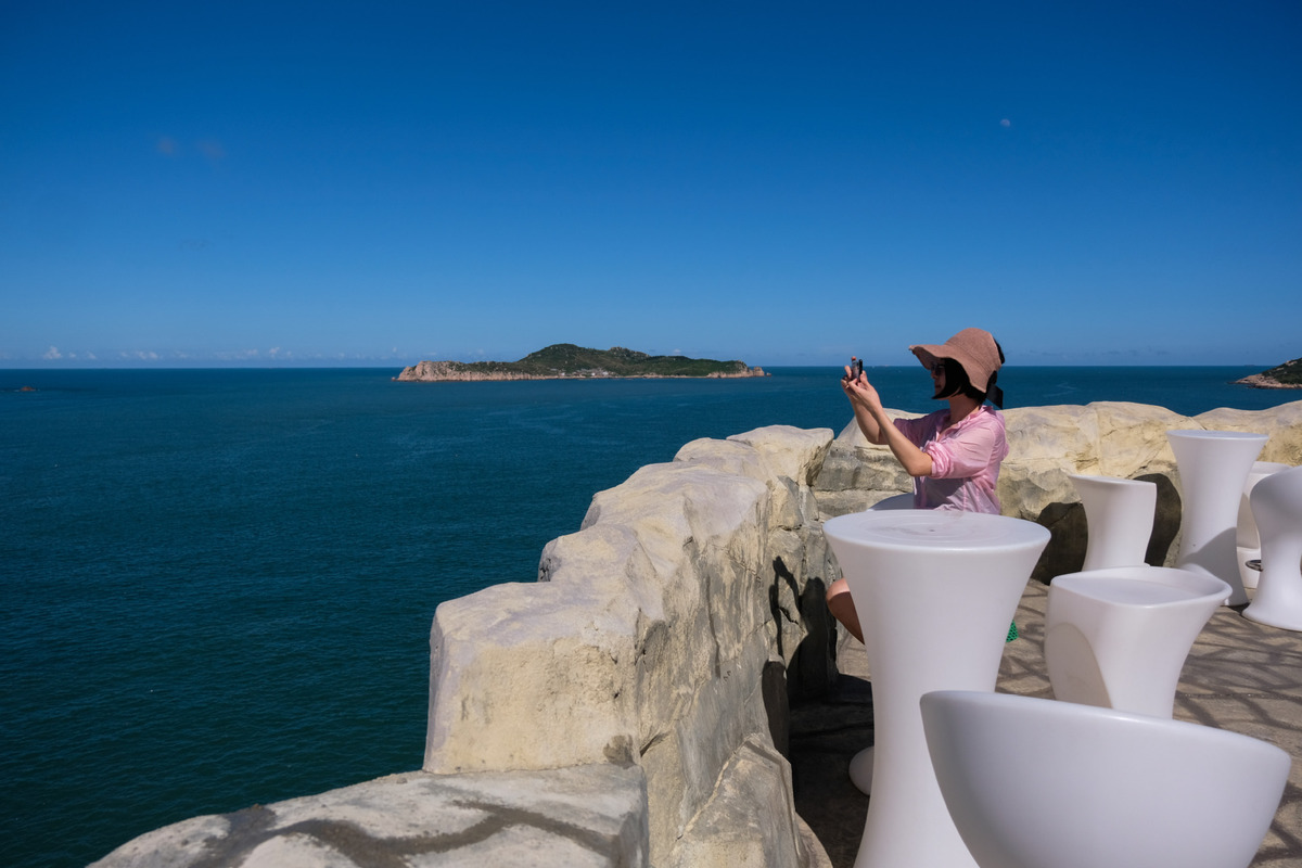 A visitor takes photos of the sea at a cliff hotel on Nanji Island in Wenzhou, East China's Zhejiang province, July 29, 2020. [Photo/Xinhua]