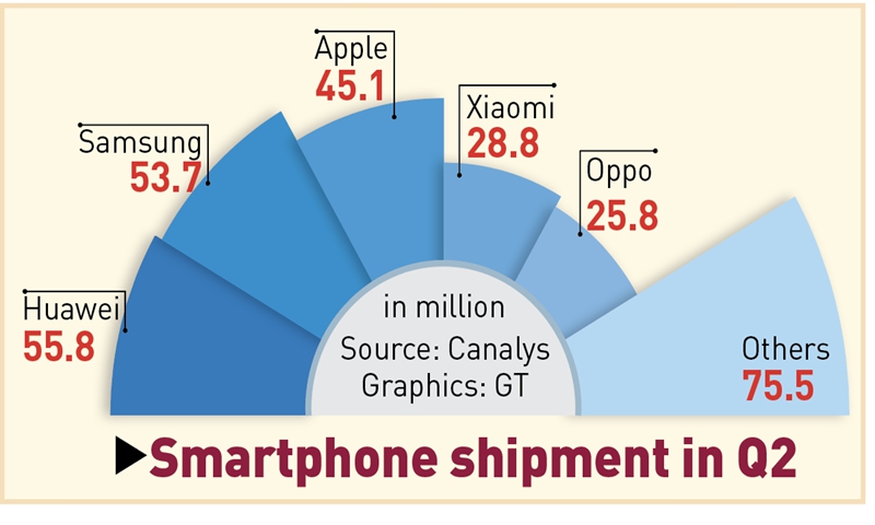The US chip ban that is set to be effective from mid-September might spell the end for production of Huawei's self-developed Kirin chips, and it could also dampen the competitiveness of the company's high-end phones in the key domestic market as its share in overseas consumer markets shrinks amid US sanctions, Chinese analysts said.