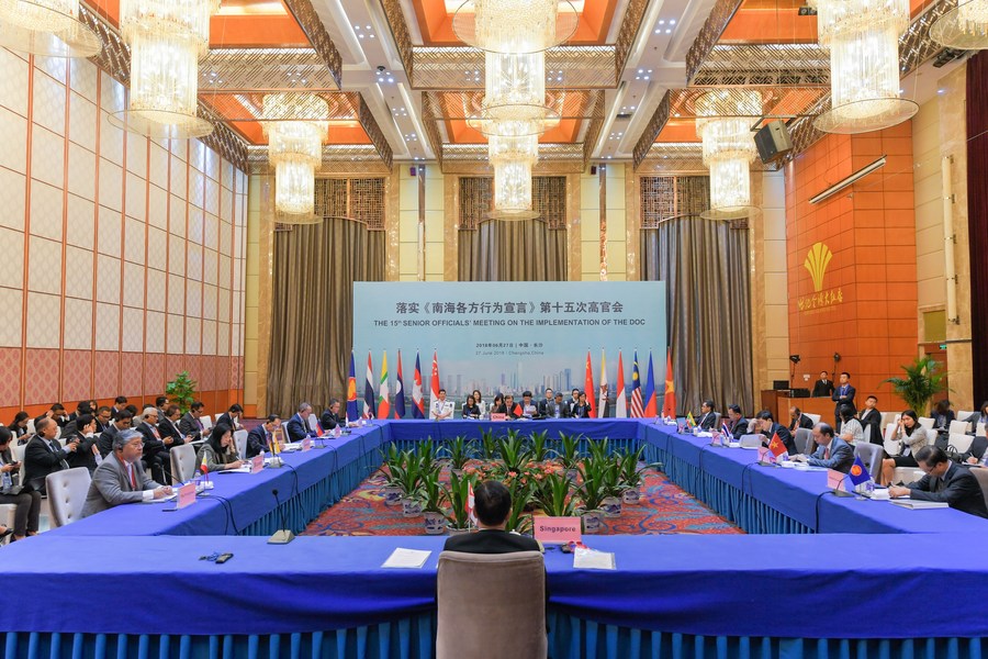 The 15th Senior Officials' Meeting on the Implementation of the Declaration on the Conduct of Parties in the South China Sea (DOC) is held in Changsha, central China's Hunan Province, June 27, 2018. (Xinhua/Zhang Xiaoyu)