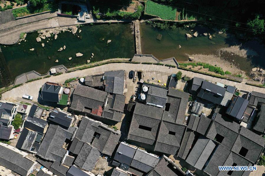 Aerial photo taken on Sept. 6, 2020 shows a view of Shishe Village at Fuchunjiang Town in Tonglu County, east China's Zhejiang Province. In recent years, the Tonglu County has invested in building a rural slow-paced life experiencing area at Fuchunjiang Town, which is based on the town's some beautiful villages and renowned scenic spots. (Xinhua/Huang Zongzhi)