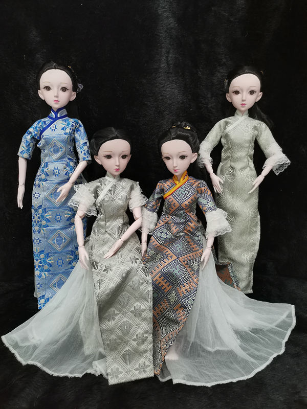 Dolls in Zhuang brocade Qipao clothes (Photo provided to People’s Daily Online)
