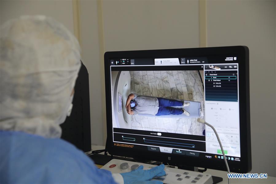 CT technician Hanan Jamal completes a scan for a patient at al-Shifaa Center in Baghdad, Iraq, Oct. 12, 2020. In a specialized COVID-19 hospital in Iraqi capital of Baghdad, a Chinese-donated CT scan, mobile X-ray equipment, and other medical supplies are saving lives in the front-line battle against the COVID-19 pandemic. Already 400 patients have benefited from the important medical donation. (Xinhua)