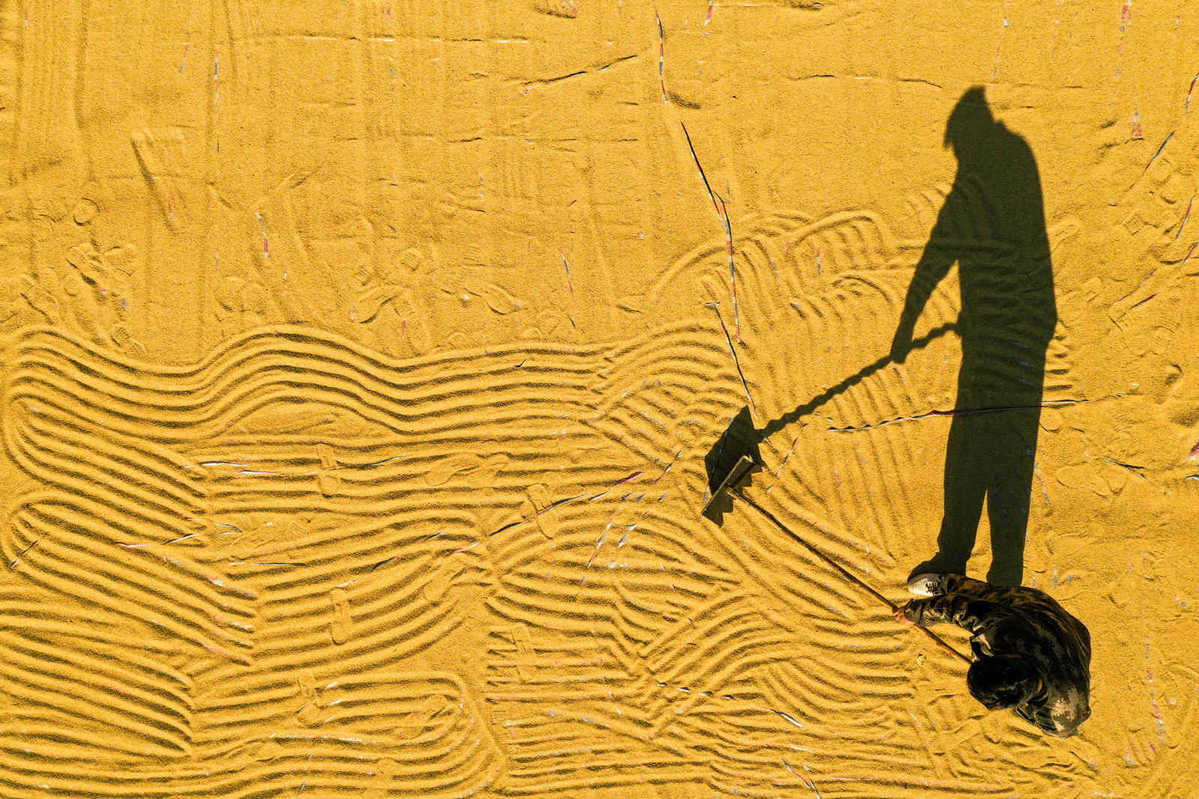 A farmer dries grain in Matian, a village in Zuoquan county, Shanxi province, on Saturday. All households in the village were lifted out of poverty at the end of 2018 thanks to local authorities' targeted poverty alleviation measures. CAO YANG/XINHUA