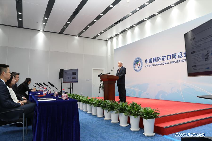 A delegate from Orix Group introduces the group's plan for attending the 3rd China International Import Expo (CIIE) during the publicity conference of the Trade In Services exhibition area at the National Exhibition and Convention Center (Shanghai) in Shanghai, east China, Oct. 19, 2020. The 3rd CIIE will be held from Nov. 5 to 10 in Shanghai this year. (Xinhua/Fang Zhe)