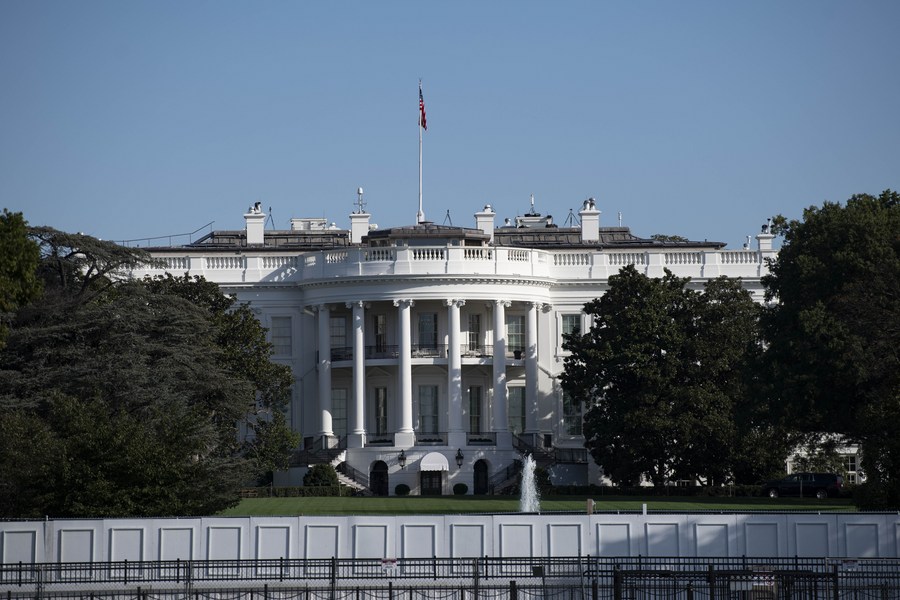 Photo taken on Oct. 2, 2020 shows the White House in Washington, D.C., the United States. (Xinhua/Liu Jie)