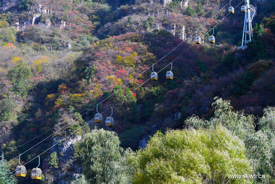 Photo taken on Oct. 22, 2020 shows the autumn scenery of Qingtianhe scenic area in Boai County of Jiaozuo City, central China's Henan Province. (Xinhua/Wang Ding)