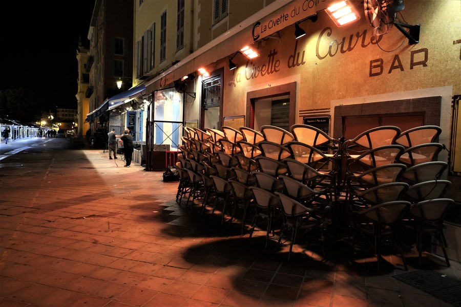 Restaurants are closed before 9 p.m. in Nice, southern France, Oct. 24, 2020. (Photo by Serge Haouzi/Xinhua)
