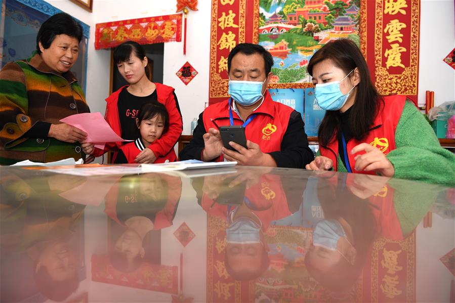 Census takers register residents' information of a household in Zipeng Town of Feixi County, Hefei City of east China's Anhui Province, Nov. 1, 2020. China on Sunday started its seventh national population count, with about 7 million census takers going door to door to document demographic changes in the world's most populous country. (Xinhua/Liu Junxi)