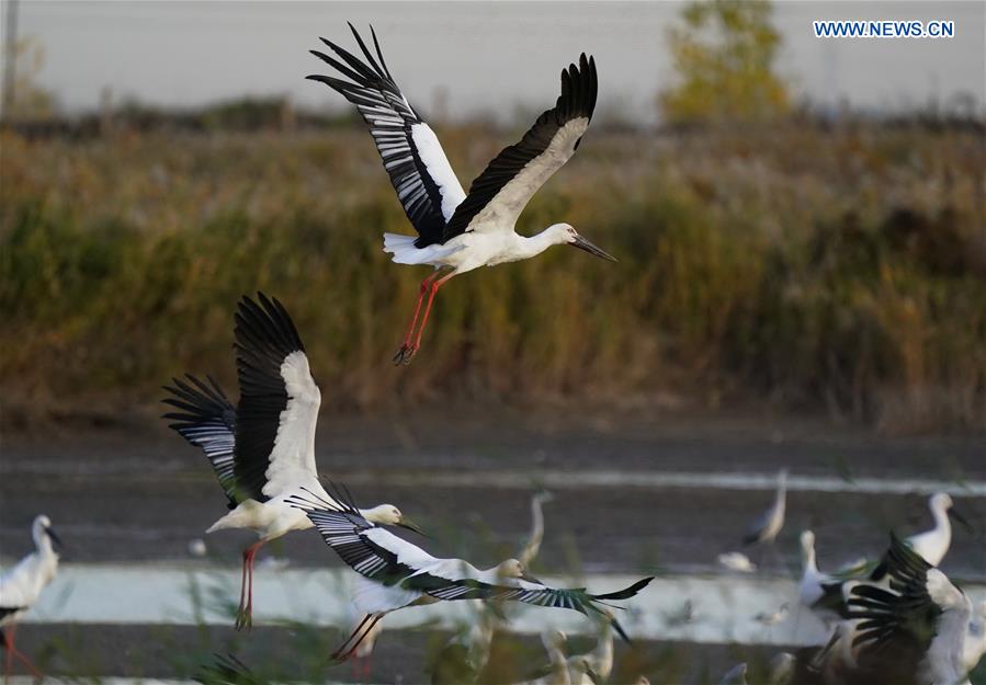 Oriental white storks seen at Caofeidian wetland in Hebei (3)