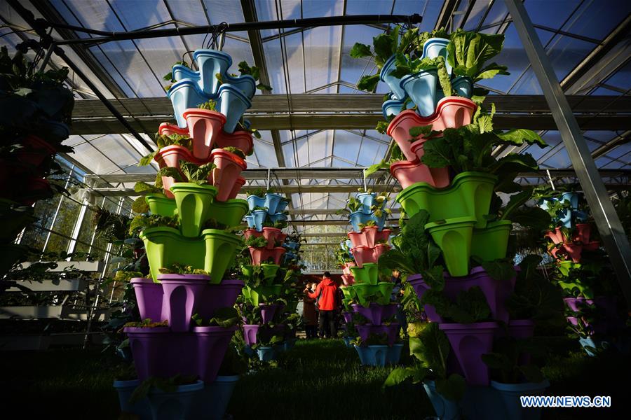 Visitors tour a greenhouse at a rural tourism complex in Fengnan District of Tangshan, north China's Hebei Province, Nov. 3, 2020. (Xinhua/Xing Guangli)