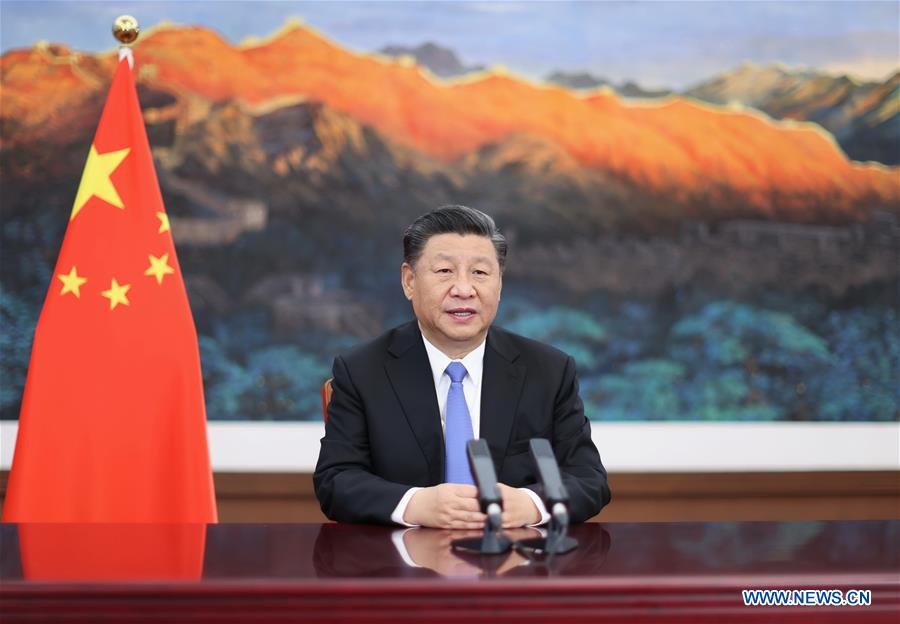 Chinese President Xi Jinping delivers a keynote speech via video at the opening ceremony of the third China International Import Expo held in east China's Shanghai on Nov. 4, 2020. (Xinhua/Ju Peng)