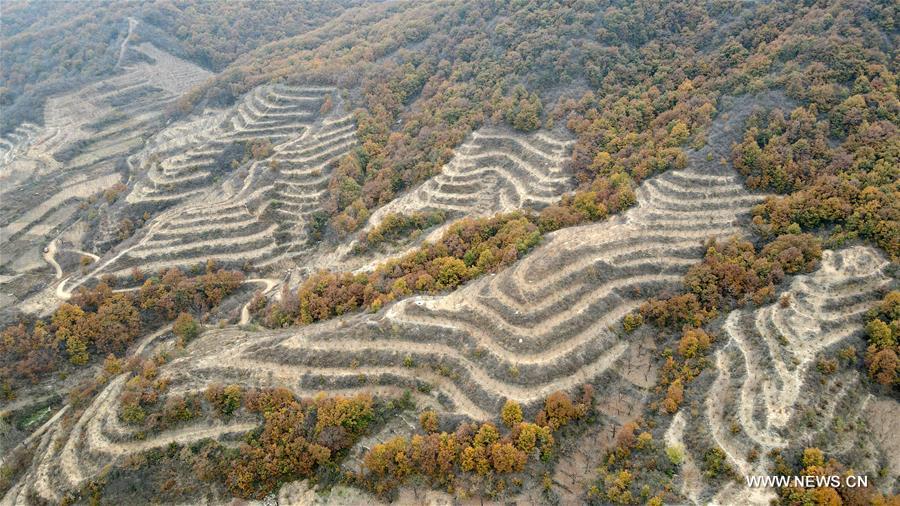 Aerial photo taken on Nov. 5, 2020 shows the autumn scenery of Taihang Mountain in Xindu District of Xingtai, north China's Hebei Province. (Xinhua/Luo Xuefeng)